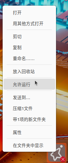这里我们可以使用chmod设置.AppImage文件的权限: