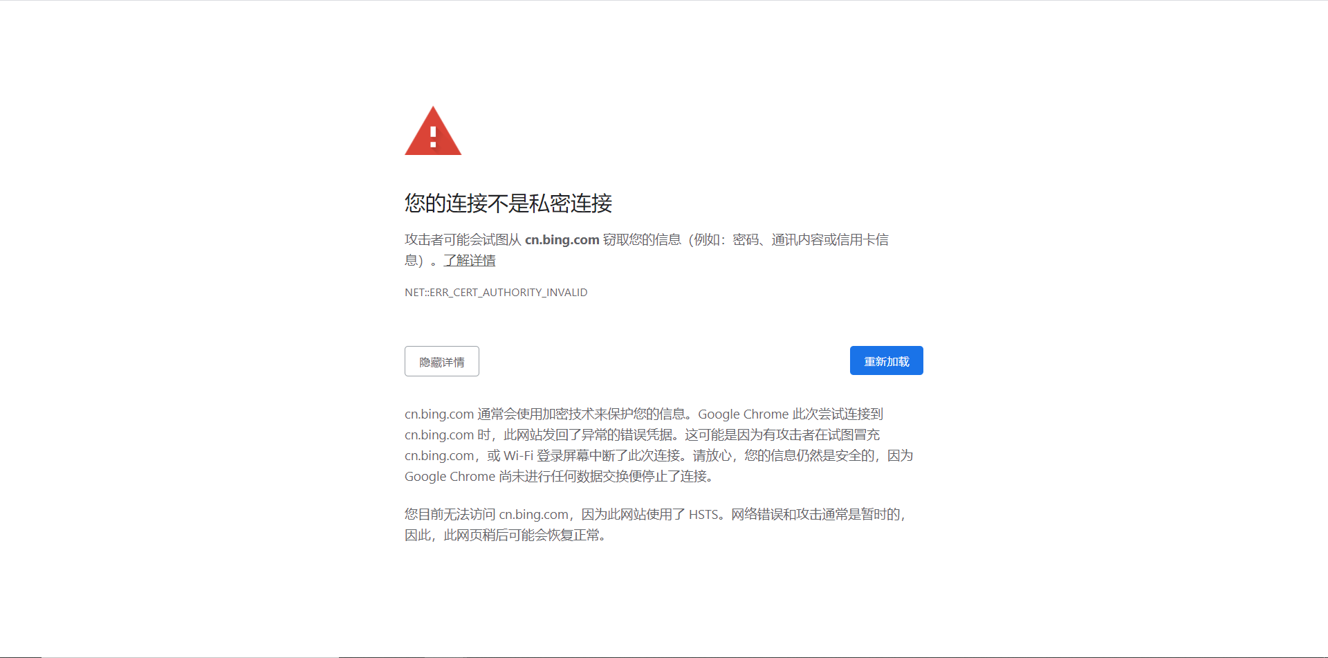 - 同时提示证书错误,导致页面无法加载