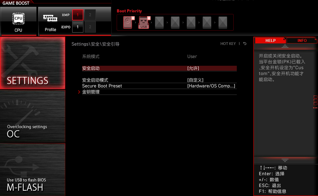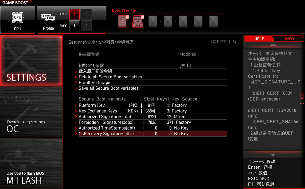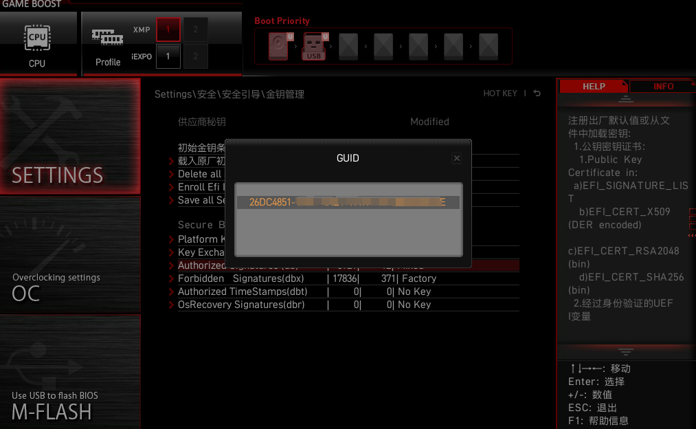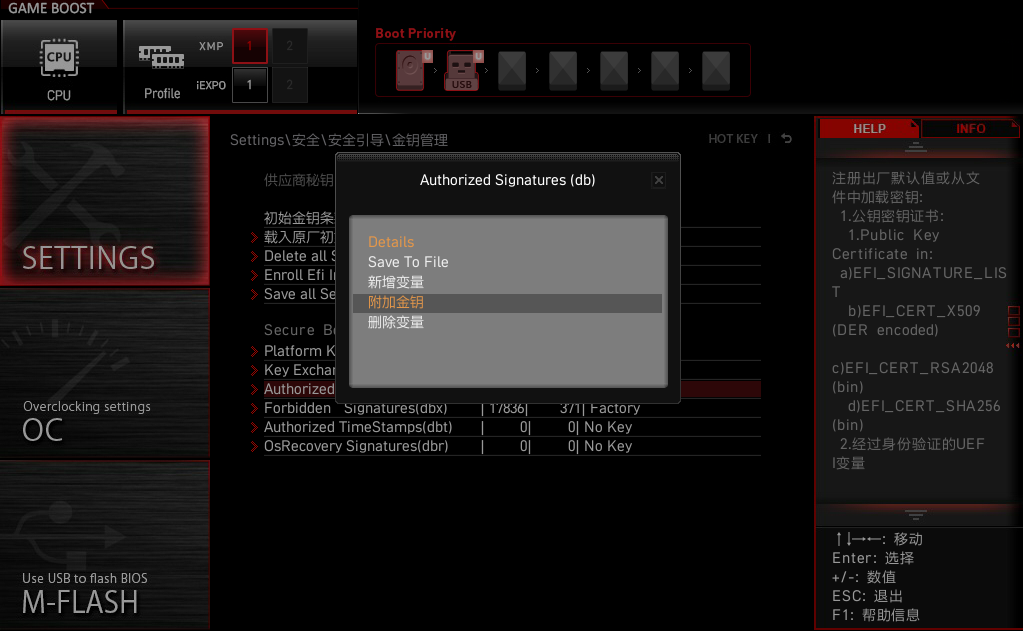 - 如果有不能签名的EFI(例如OpenCore), 可以选择在BIOS中注册EFI的HASH值(部分主板支持)
