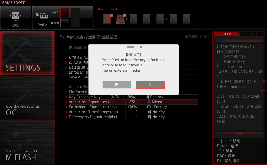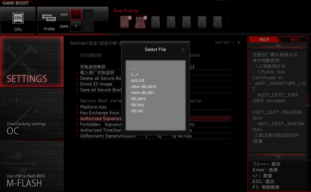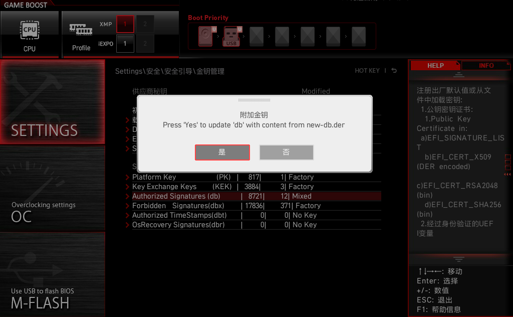如果想保留默认的密钥或者BIOS中提供了附加DB Key的功能, 可以在BIOS中直接添加, 就像这下面的流程: